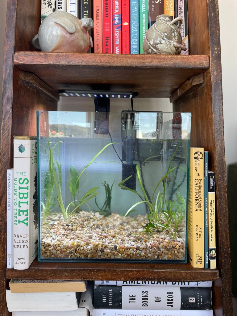 Steve gave me some bacteria to help prime the tank for the shrimp, as well as some snails, who I instantly fell in love with. I immediately named them Artemis and Gigi; they are staples in my tank and help with keeping the plant matter in check and continuing with regular housekeeping.
